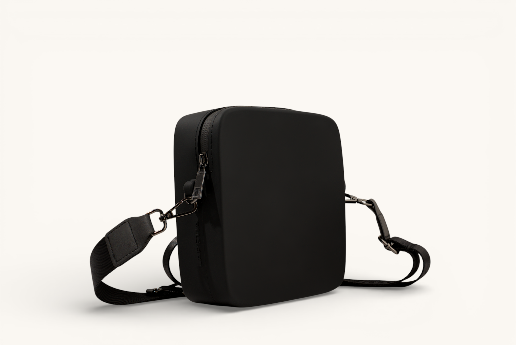 The Black Obsidian Mini Quad Crossbody Bag is a sleek, vegan-friendly square bag, perfect for everyday city wear. Stylish, durable. Enjoy your adventures with the Black Obsidian Mini Quad crossbody bag, a perfect companion for city life and everyday journeys. Carry it with ease and style whenever you go.