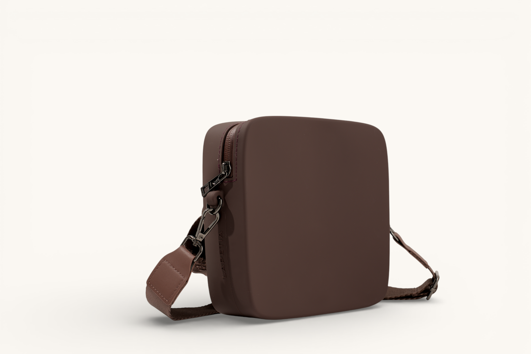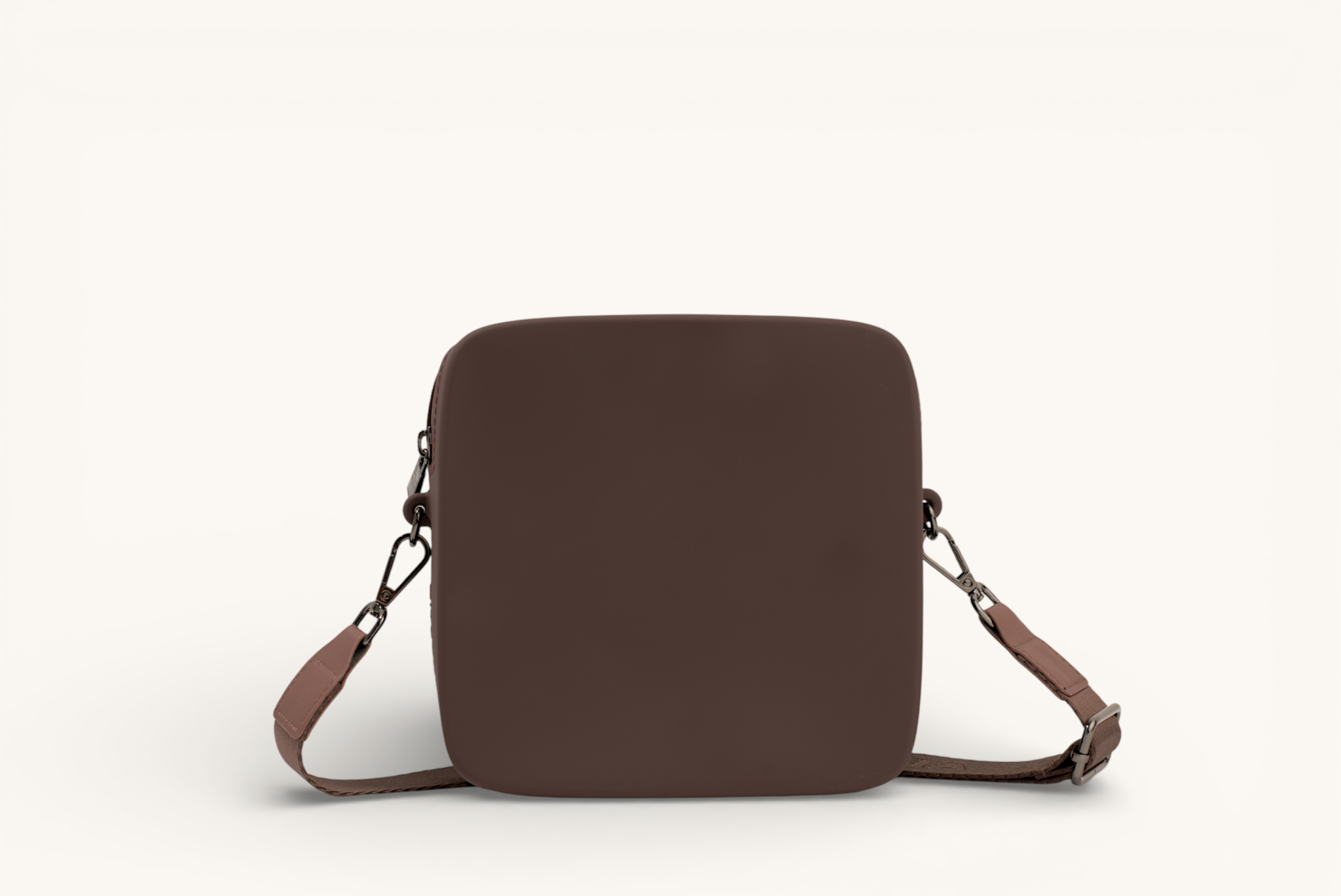 Our Truffle Brown Mini Quad crossbody bag is a sophisticated, everyday companion crafted from soft, vegan friendly silicone. The dark brown square crossbody bag combines elegance with practicality, with a smooth surface and durable strap. Perfect for commuting or casual outings, it brings modern luxury to your daily essentials.